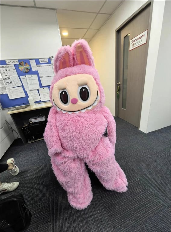A costume inspired by the cartoon character Labubu is ideal for corporate events, promotions, celebrations, theatre or children's entertainment. This professional costume excels in precise craftsmanship, comfortable cut, and the option to choose from various colour variants to suit your preferences.