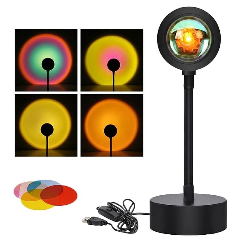 A projection lamp that allows you to project a sunset on the wall. It creates a pleasant atmosphere for your home. It is ideal for taking beautiful photos. It transforms your space into a beautiful place. Perfect for family celebrations, parties, dinners, or other special occasions.