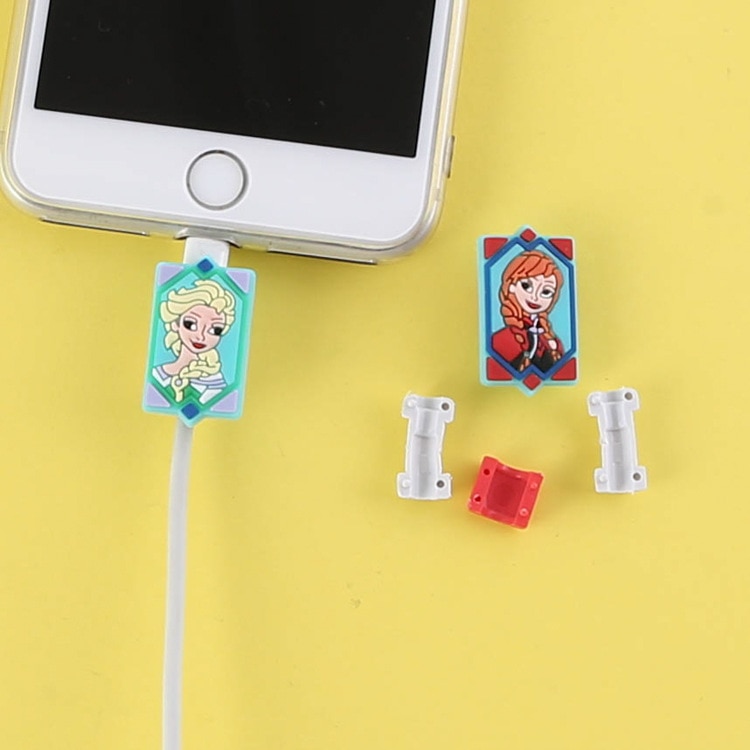 Protective cap for mobile charging cable with Frozen princess print
