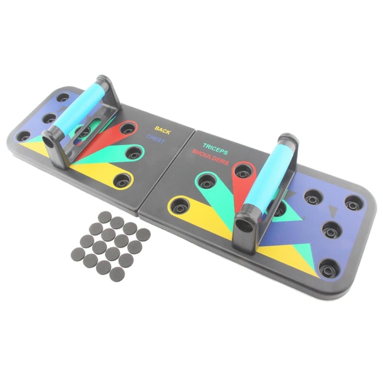 • Various colour-coded push-up boards target specific muscles (Yellow – back, Purple – chest, Green – triceps, and Red – shoulders)