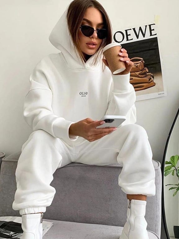 The set includes elegant joggers and a hoodie.