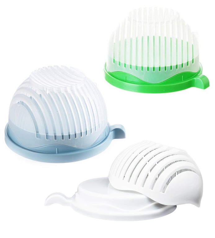 A practical bowl with slots for knife blades for efficient and quick food cutting inside the container. The bowl also works great for rinsing fruits or vegetables without them falling into the kitchen sink.