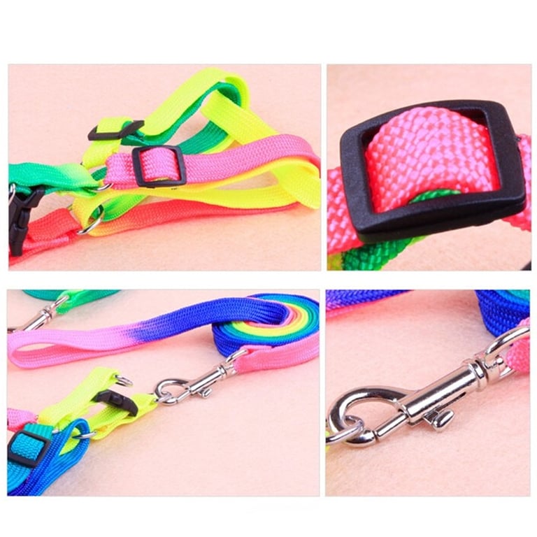 The lead is suitable for small dogs, rabbits, or cats. The harness can be adjusted to fit your pet. Thanks to its rainbow colour, it is completely unique. It makes a great gift.