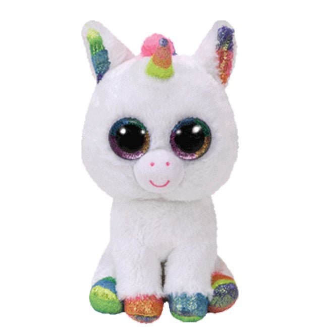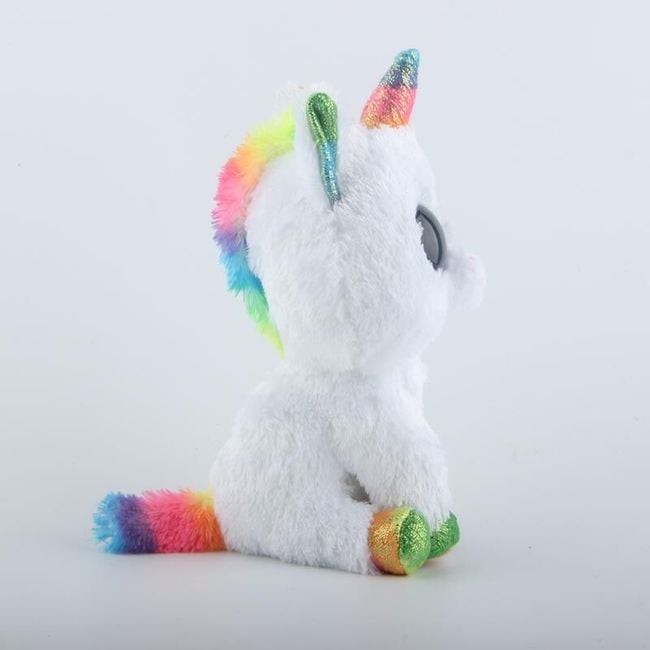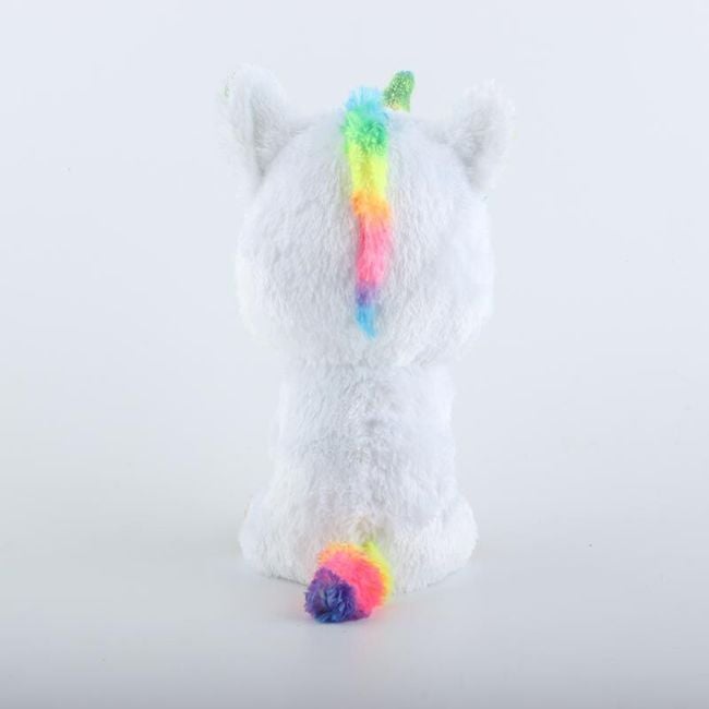 The unicorn has rainbow hooves, eyes, and a horn. It is very cute and suitable as a toy for your little ones.