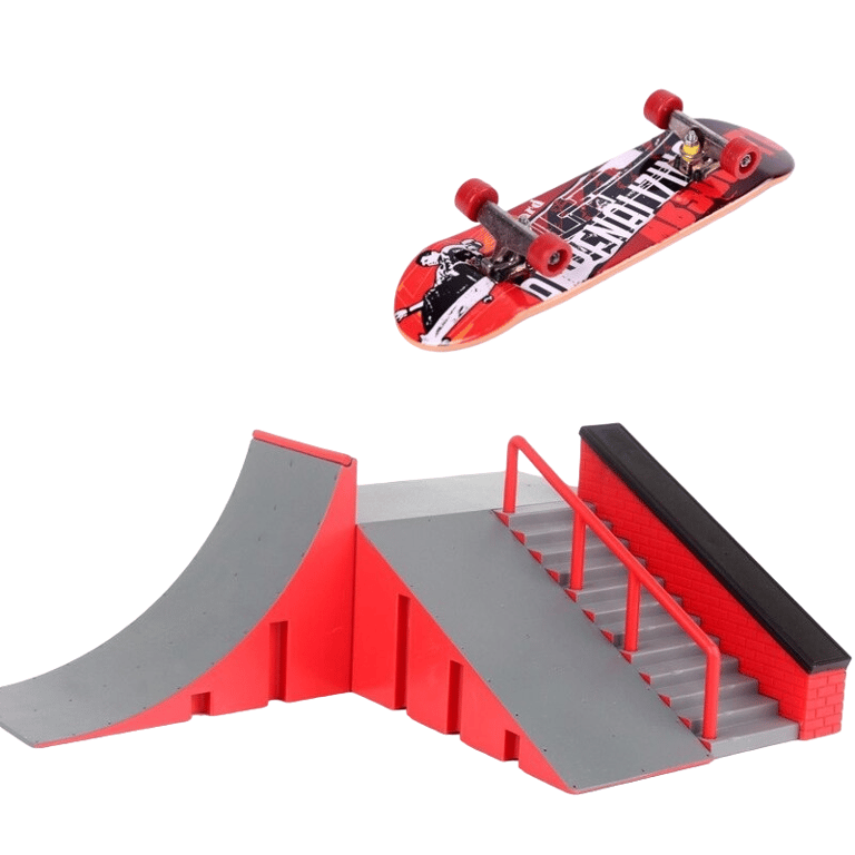 The skateboard ramp and mini skateboard set is perfect for anyone looking to learn finger control and perform tricks. The ramp is the ideal size for learning new skills. With this set, you will develop motor skills and have lots of fun.