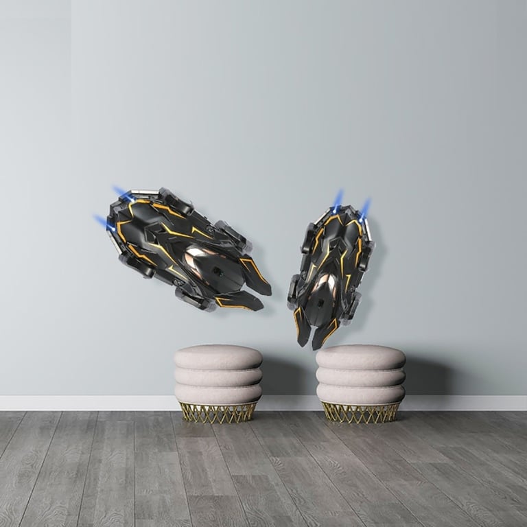 Drives on the ground and on the ceiling. Works on the principle of suction to the wall.