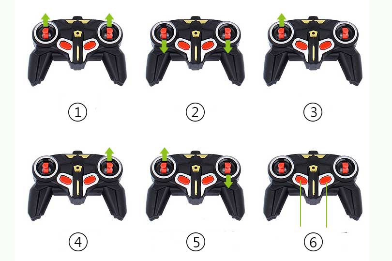 Controller features: 1. the car moves forward, 2. backward, 3. right, 4. left, 5. spin, 6. transformation into a robot