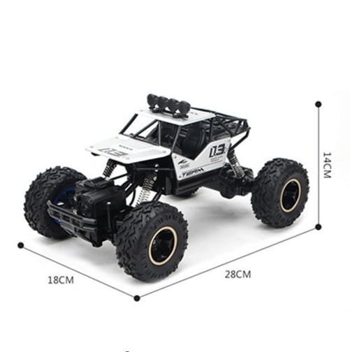 A four-wheel drive car with rubber wheels that can tackle any obstacle.