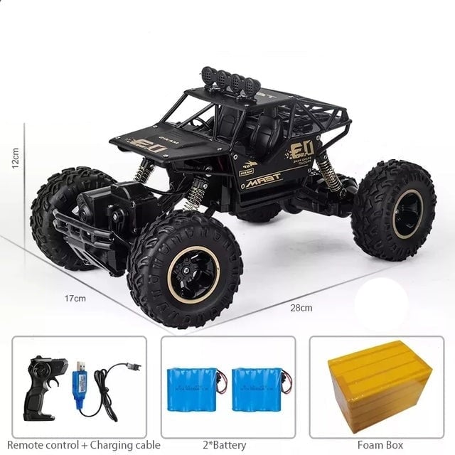 RC off-road car with remote control in various colours.