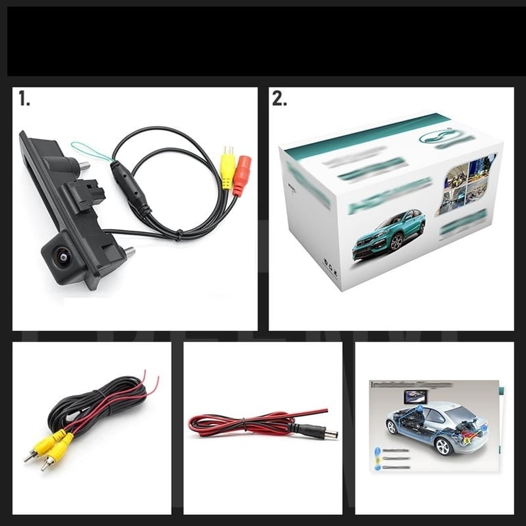 Rear parking camera Suitable for Audi, Volkswagen, Škoda, Seat. Check the dimensions before purchase; the camera fits only certain cars. Suitable for an Android DVD player or any in-car TFT monitor. Dimensions: 110 x 49 mm Image sensor: Sony/CCD 3089 Effective resolution: 720 x 480 px Horizontal resolution: 720 TVL Video format: NTSC, PAL Field of view: 165° Video output: 1.0 Vp-p, 75 ohms Waterproof rating: IP68 Night vision range: 15 m Voltage: DC 12V Package contents: 1x camera, 1x 6 m video cable, 1x 1 m power cable, 1x user manual
