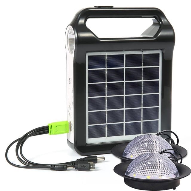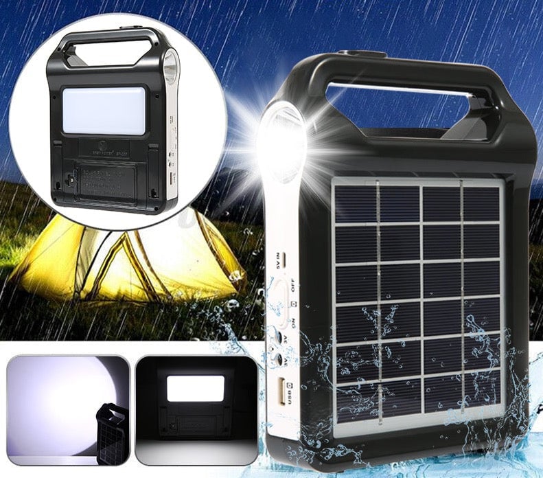 Rechargeable portable solar panel with LED light.