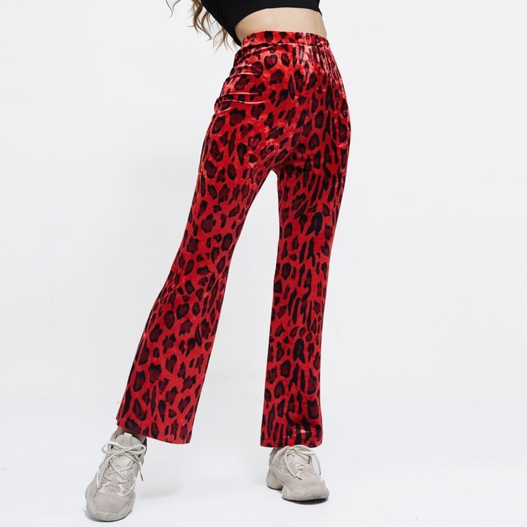 Red leopard print women's trousers