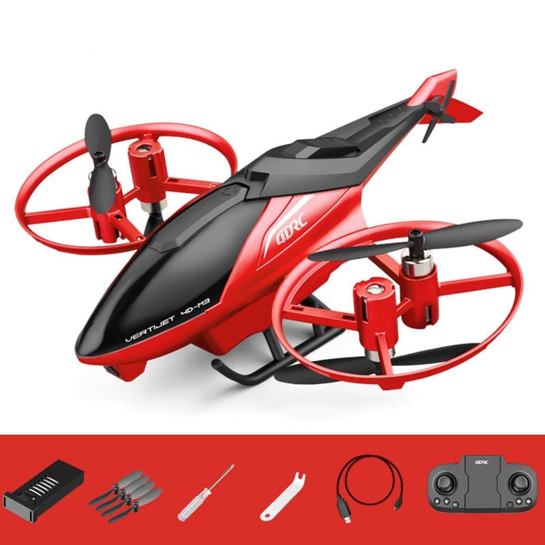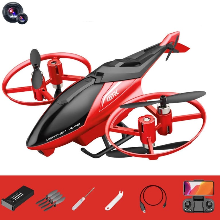 Red acrobatic remote-controlled helicopter.