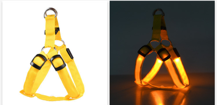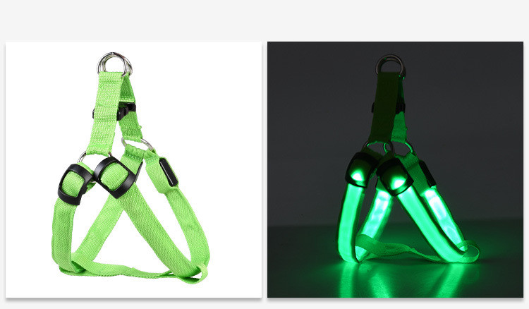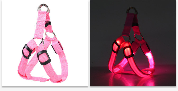 The glowing harnesses have 3 types of lighting (steady light, flashing, rapid flashing). Colours: yellow, red, pink, blue, green, white.