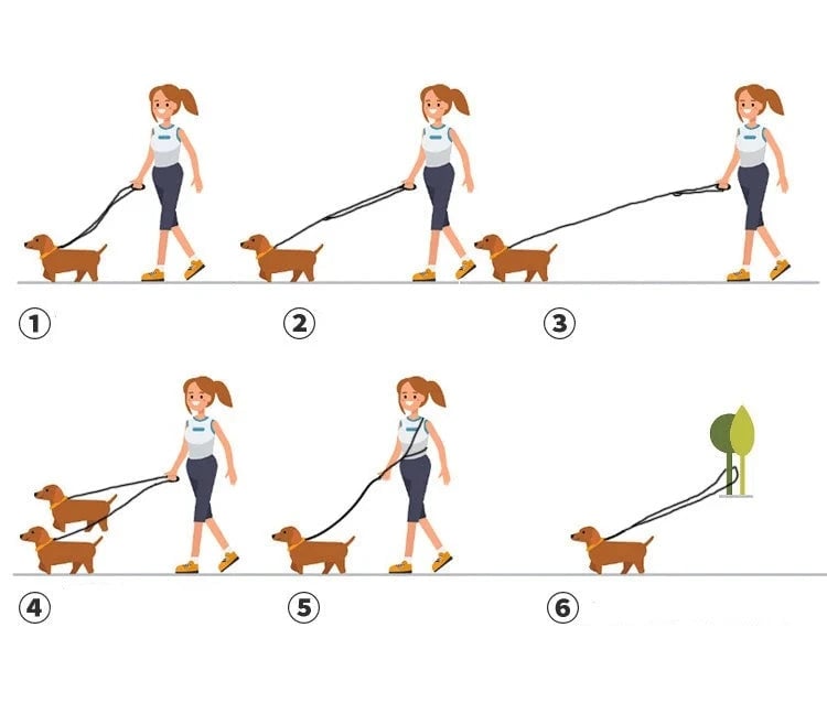 Reflective adjustable dog lead with the option to set the length of the lead.