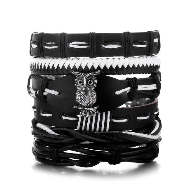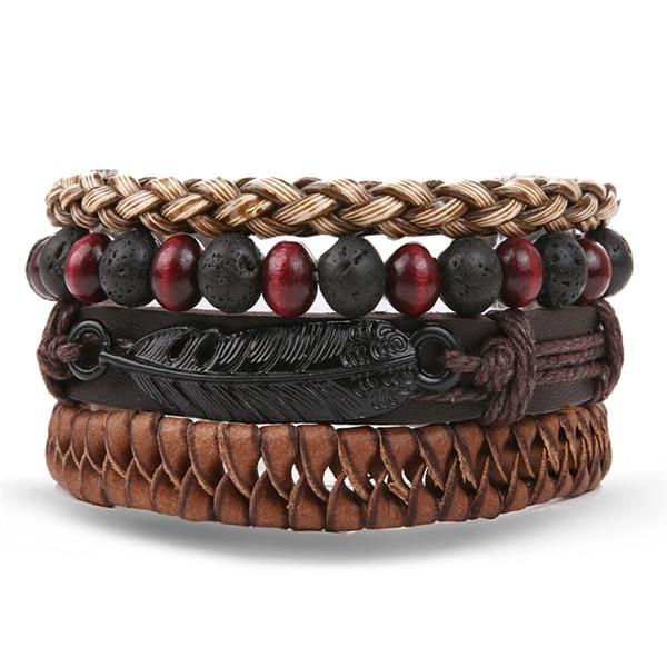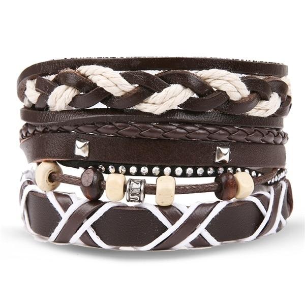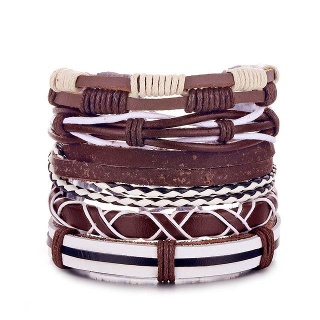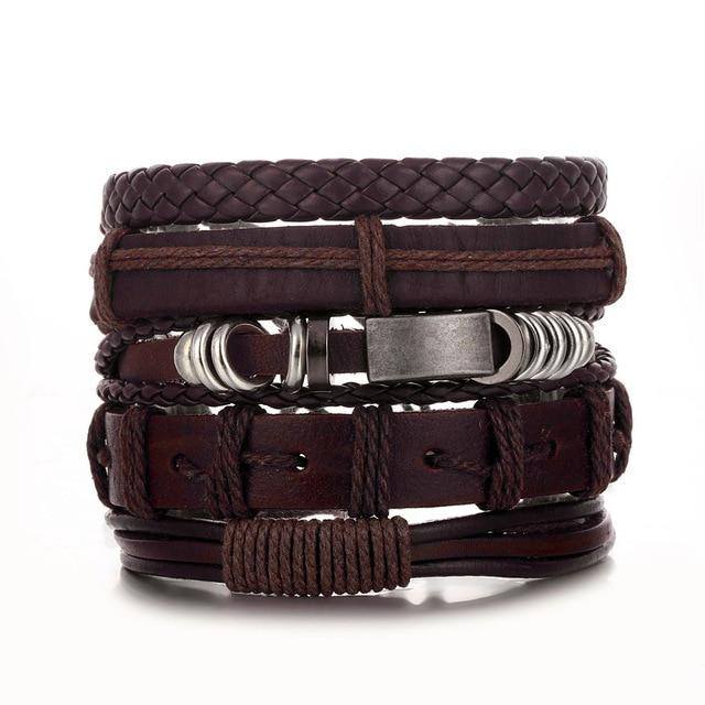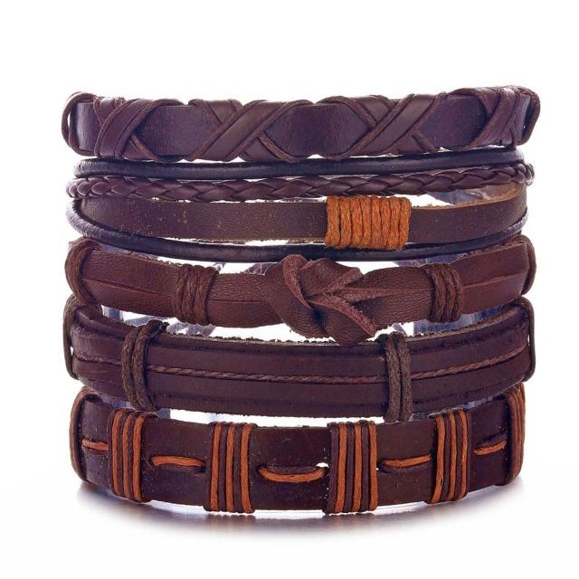 Men's leather bracelet, made from synthetic leather. This is a set of bracelets that are complete, complemented by jewellery components.