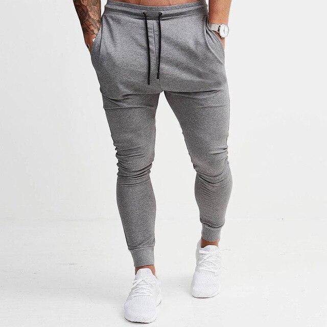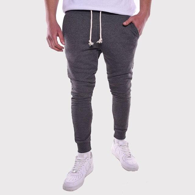 Men's body-hugging joggers with a low rise. The joggers are made from lightweight material and feature side pockets.