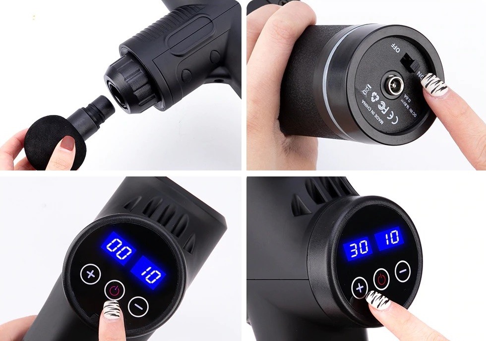 The massage vibrating gun is a device that stimulates blood circulation and helps you relax tense muscles. The gun is controlled via an LCD touch screen. The vibrations can be adjusted to 20 different speeds. The package also includes 6 interchangeable attachments for various massages. The massage gun is a suitable tool for both recreational and professional athletes and is almost an essential tool for physiotherapists.