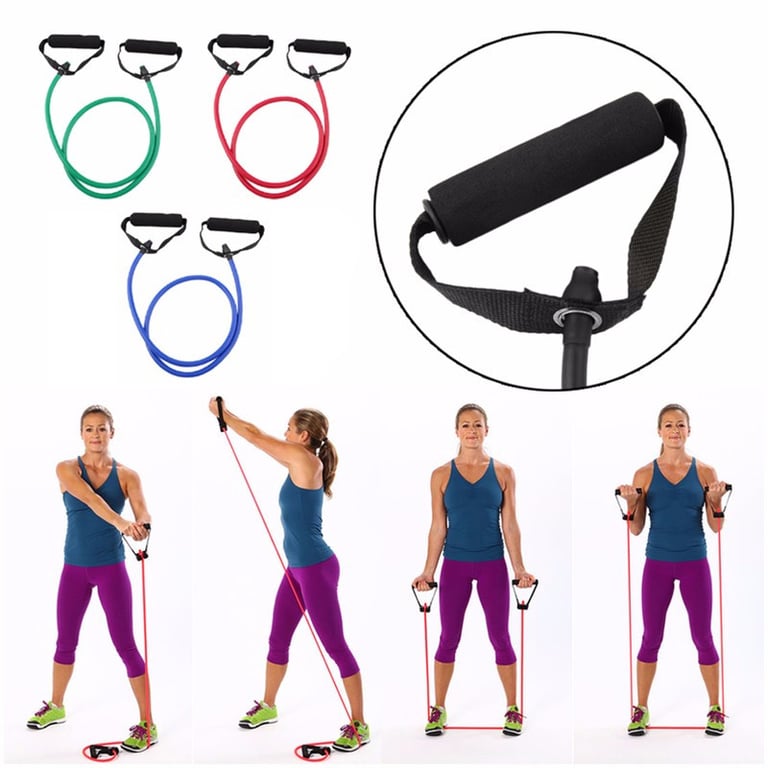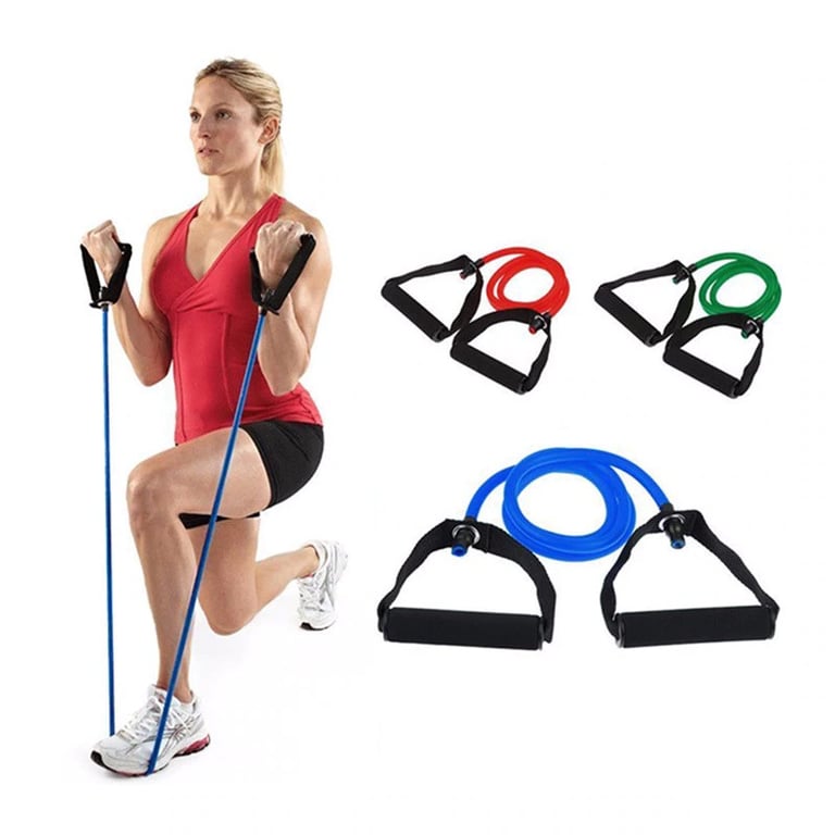 Resistance band for full body workouts. Thanks to its compact size, you can take the band with you anywhere and exercise, for example, on your favourite beach while on holiday. The length of the band is 120 cm, thickness is 10mm, and the handle measures 11 cm.