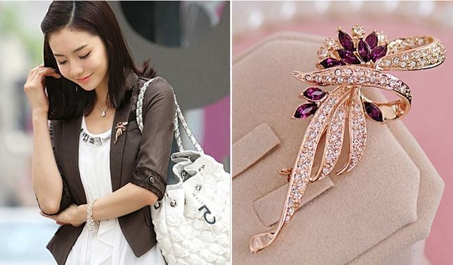 The brooch is adorned with beautiful stones and goes well with everything.