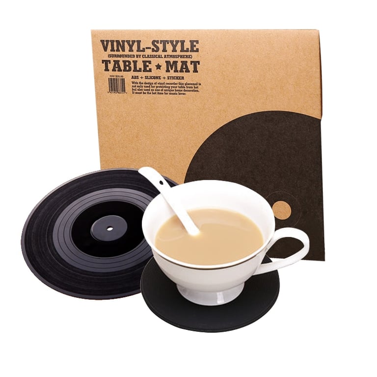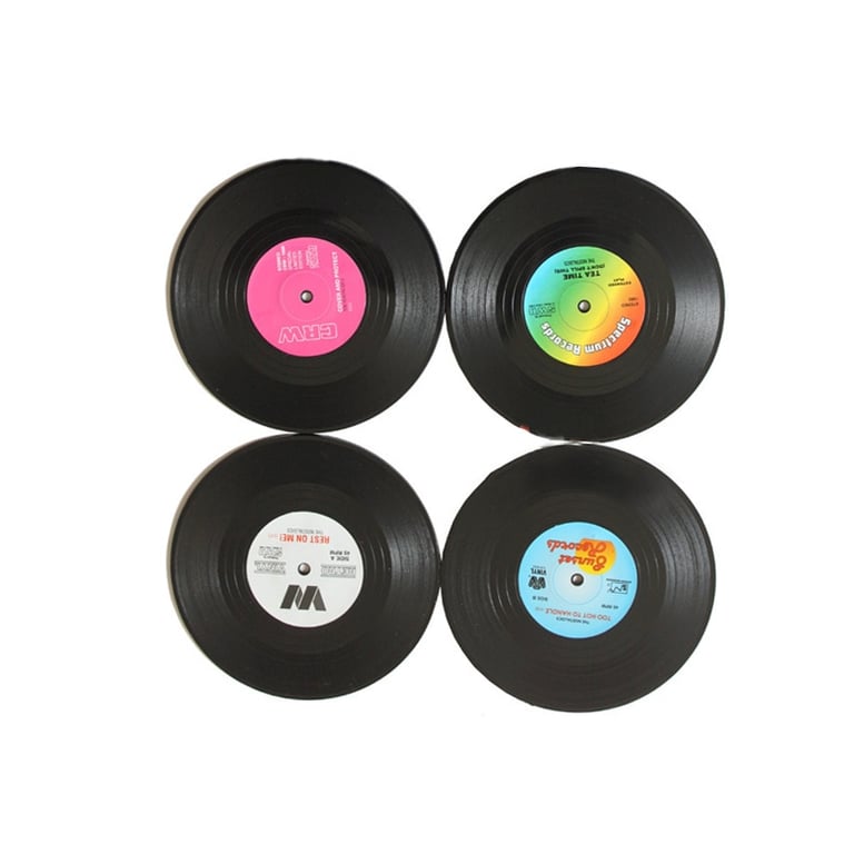 Beautiful and original coasters in the style of vinyl records. Resistant to high temperatures and damage. Order either 2, 4, or 6 pieces (random patterns).