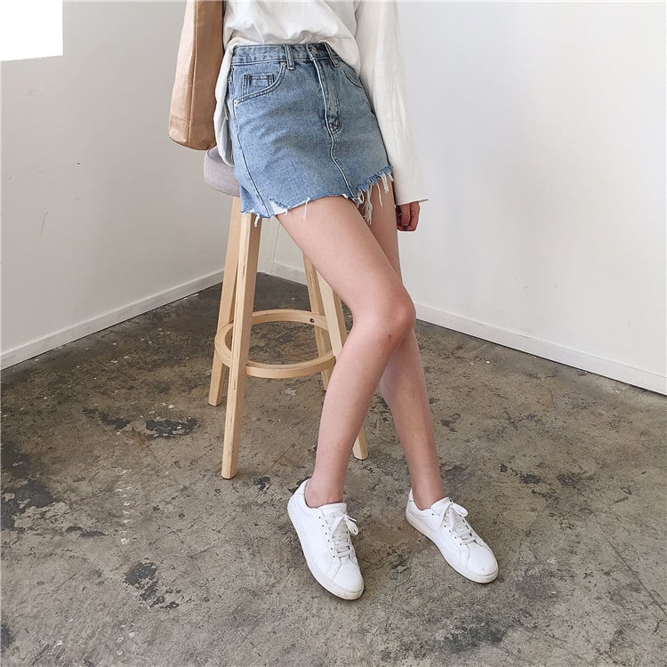 Enjoy the summer days with this ripped retro denim skirt that will never go out of style!