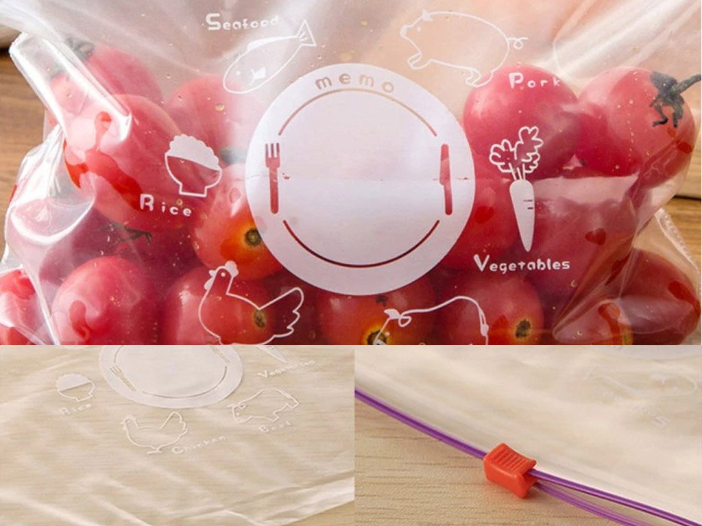 The practical ZIP bag keeps your food fresh for longer. The large pack of 10 or 20 ZIP bags is useful for storing rice, vegetables, meat, and other foods.