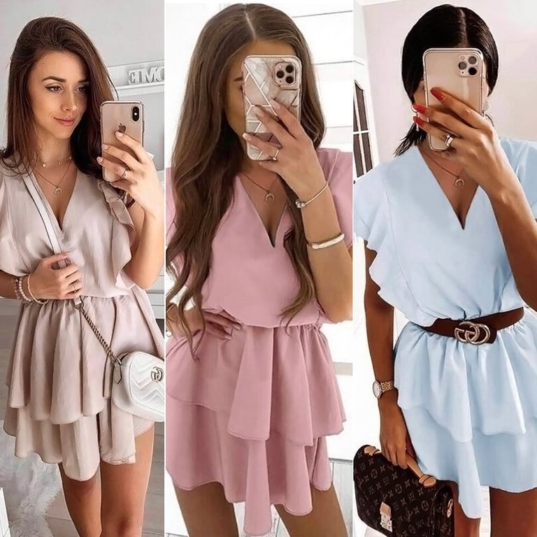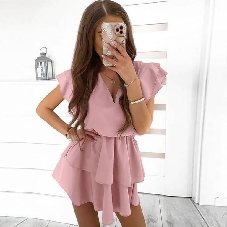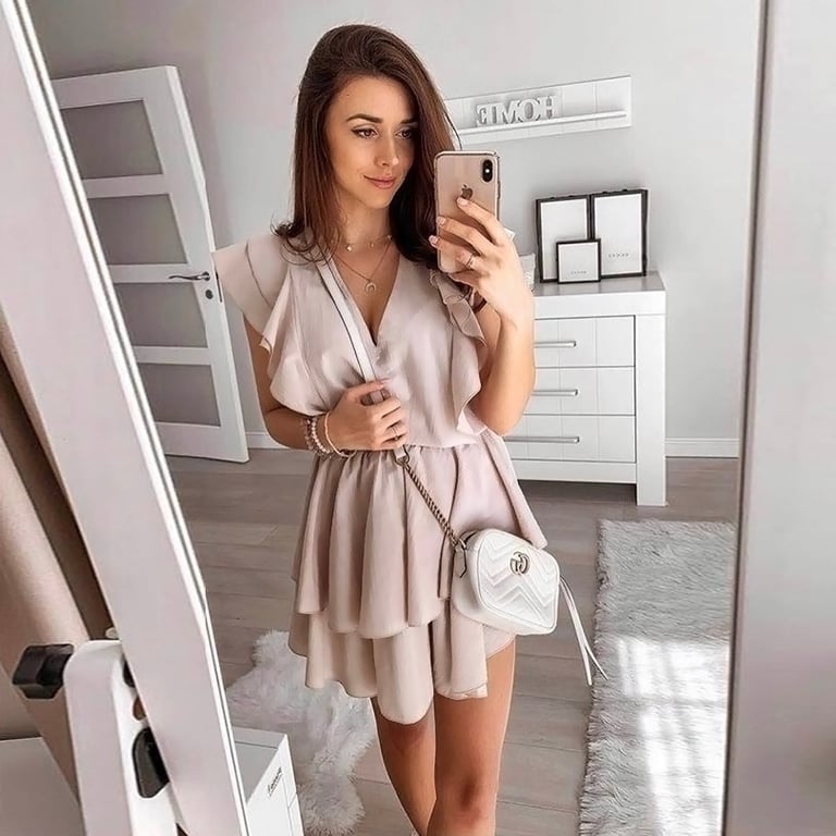 RêveRomantique™ Women's Elegant Chiffon Dress with Ruffles