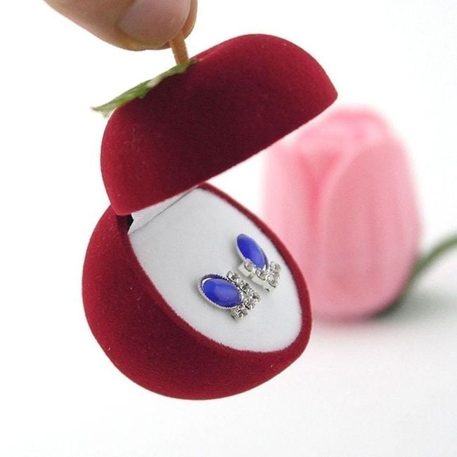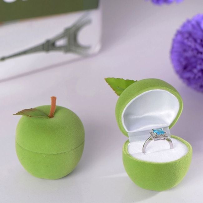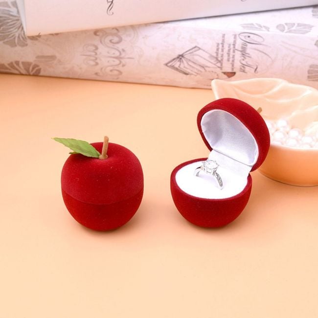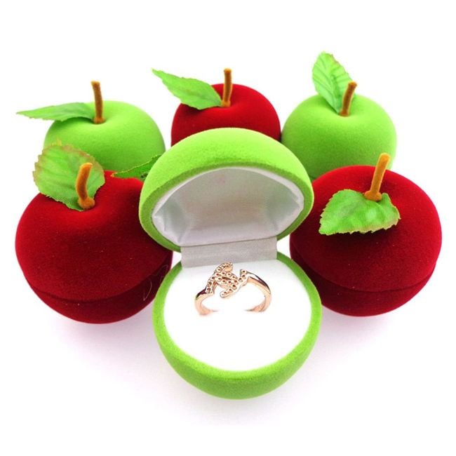 The apple with a stem and leaf reveals a space for a ring or small earrings when opened.