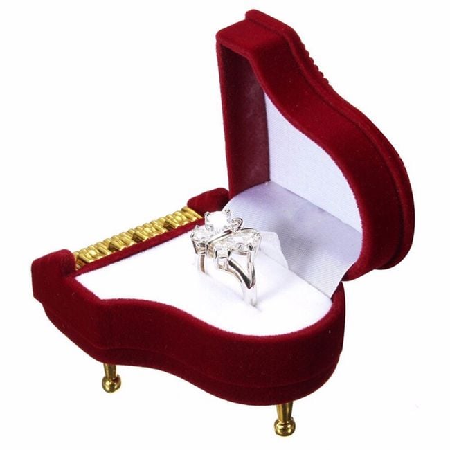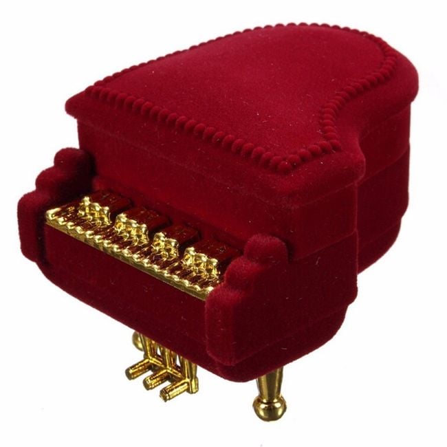 The original gift box in the shape of a piano can be used to present a ring or earrings.
