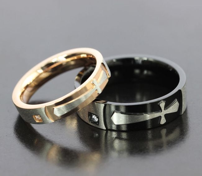 We offer a variant for both men and women. The ring is adorned with a cross. You can choose from several sizes.