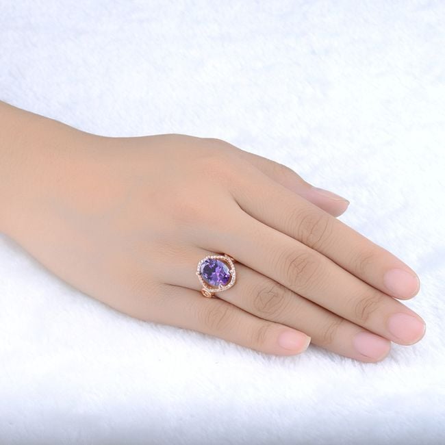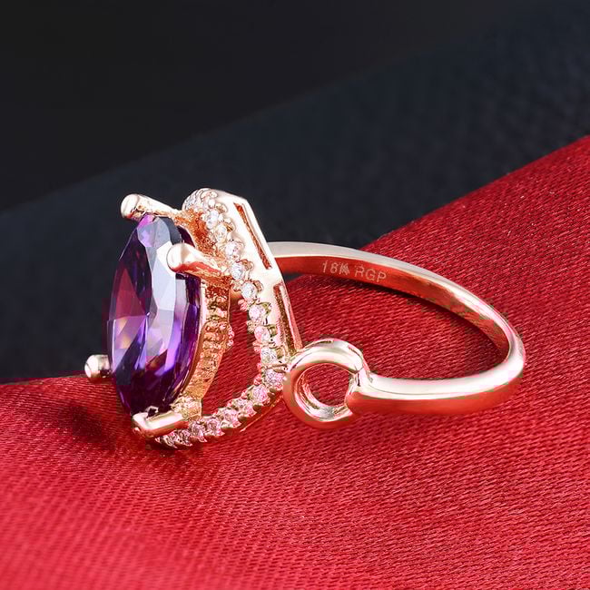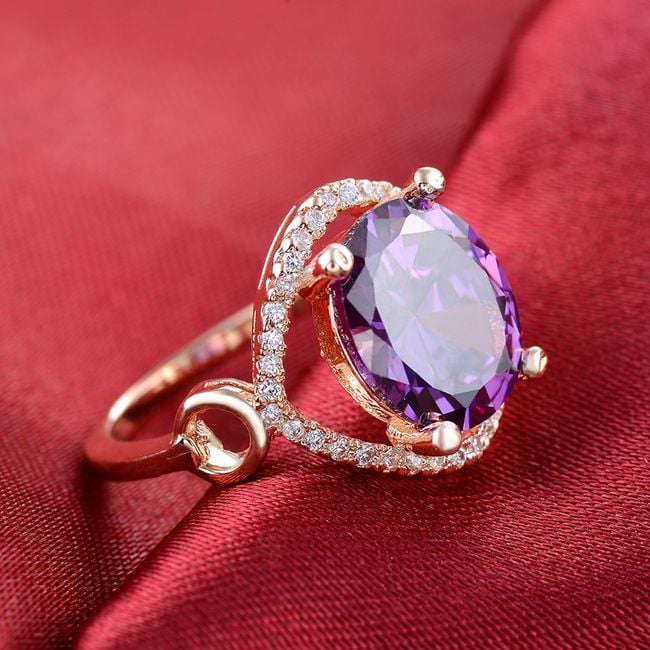 A ring with a purple crystal that will be an interesting piece for your jewellery box!