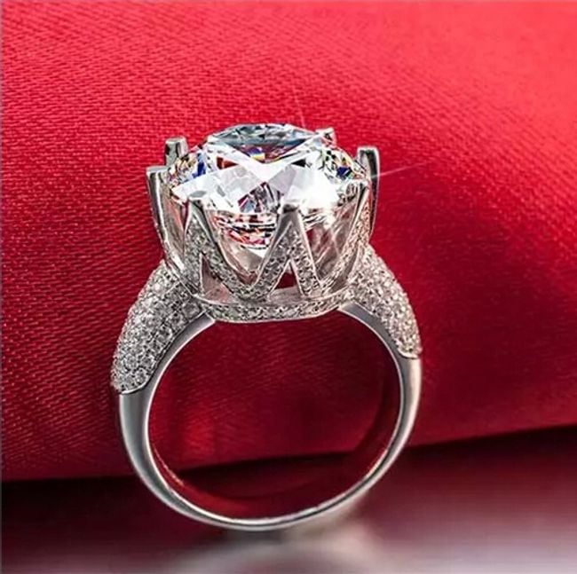 This eye-catching ring beautifully adorns a woman's hand. The ring is decorated with stones all around its circumference. The large and sparkling stone looks elegant. It makes a lovely gift for a significant other.
