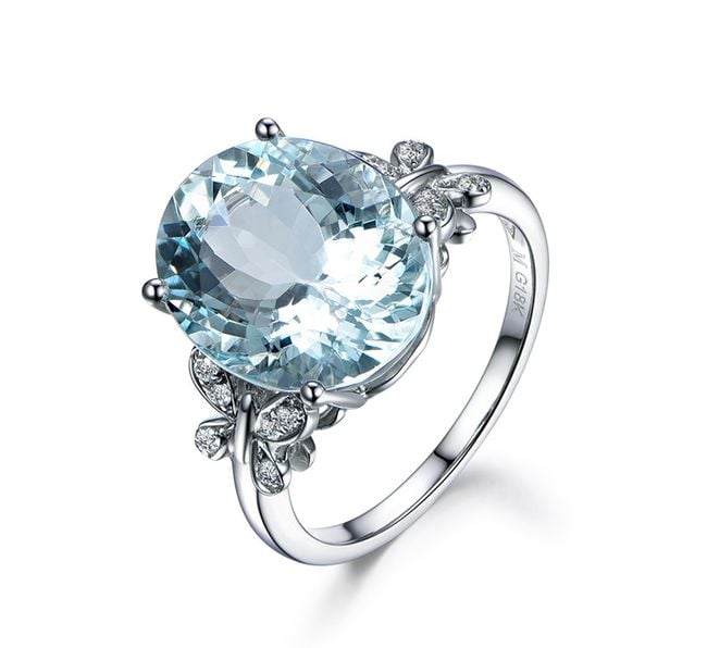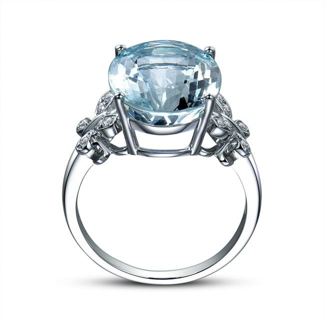 The centrepiece of this ring is a pale blue stone, complemented by silver butterflies.