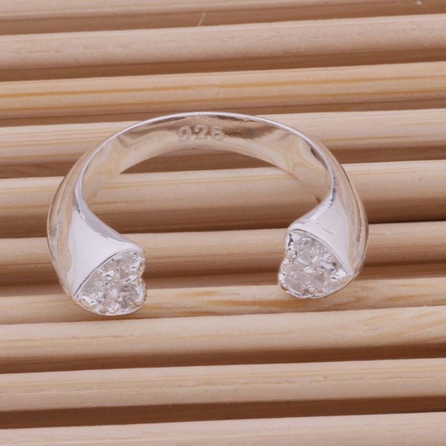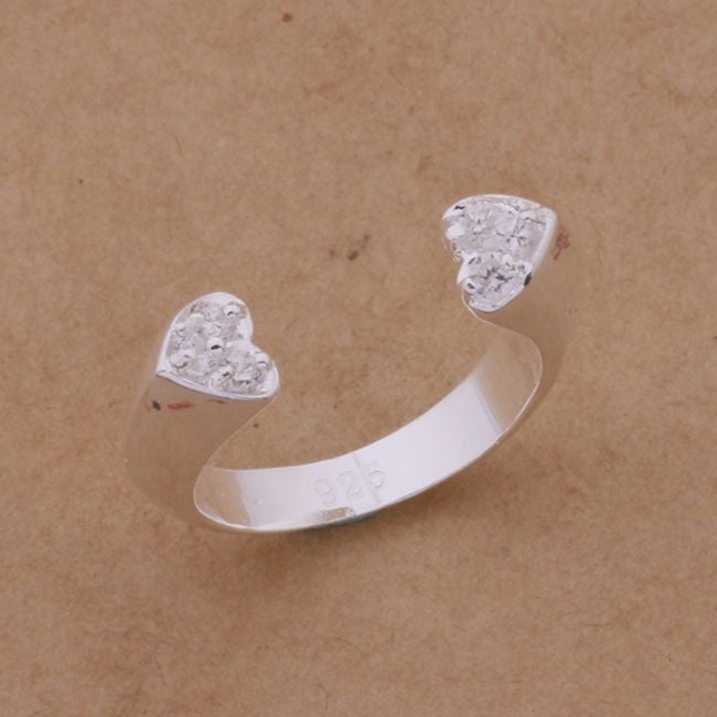 A charming ring with sparkling hearts is designed to be adjustable to the size of your finger.