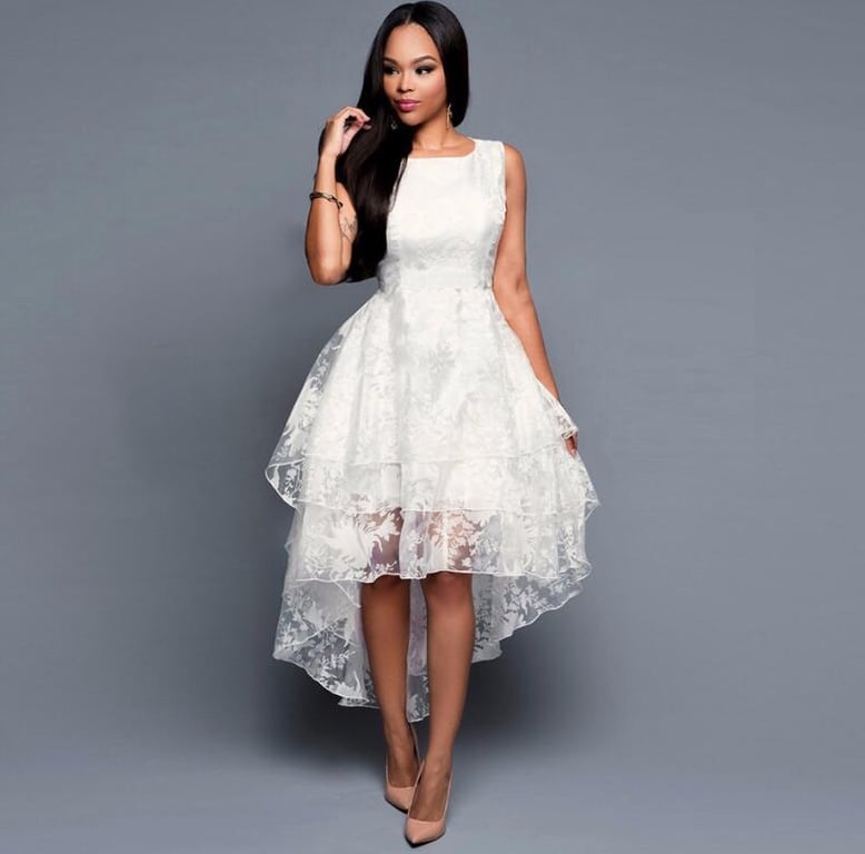 Romantic sleeveless women's dress. Layered asymmetrical skirt!