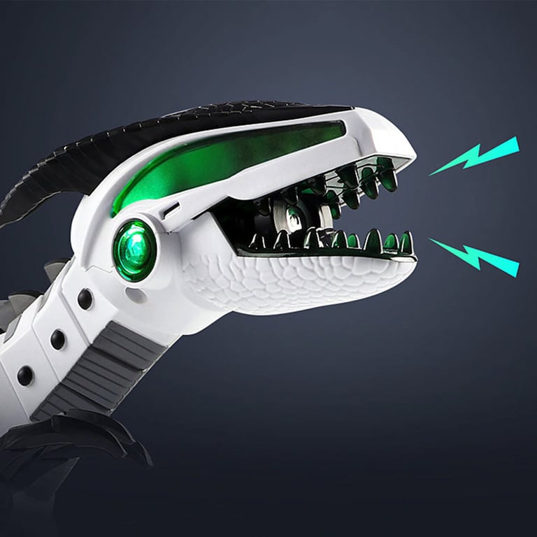 Mechanical toy for children. The dinosaur is equipped with sound effects and a realistic mechanism that ensures steam emission and movements of the head and tail, making it appear like a real predator.