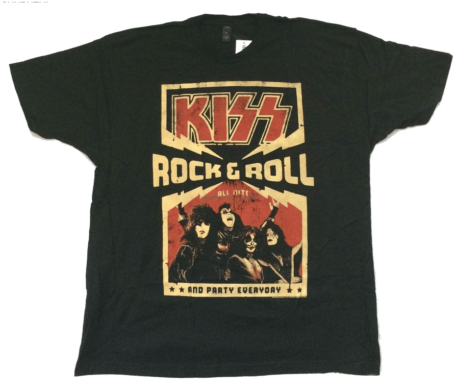Men's cotton t-shirt featuring a print of the famous rock band Kiss.