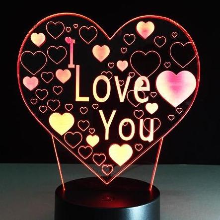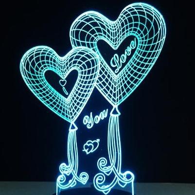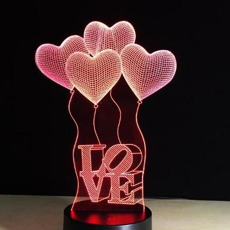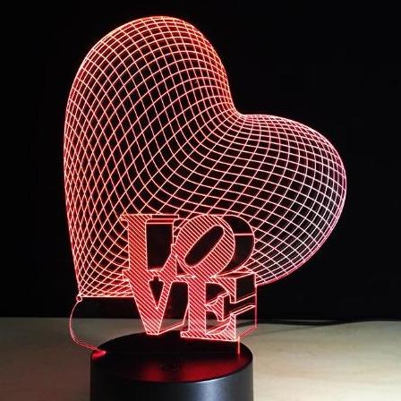 Romantic 3D lamp with LED light. The lamp changes colours, creating a romantic atmosphere.