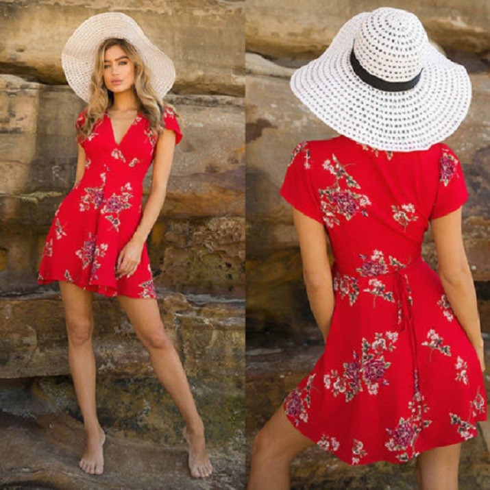 Women's short summer dress with a romantic floral print.