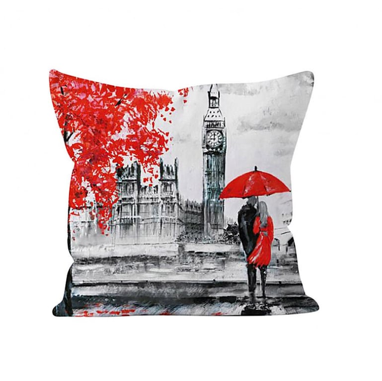 Pillowcase with original colourful print. Black and white motif of London. Size 30×50 cm.
