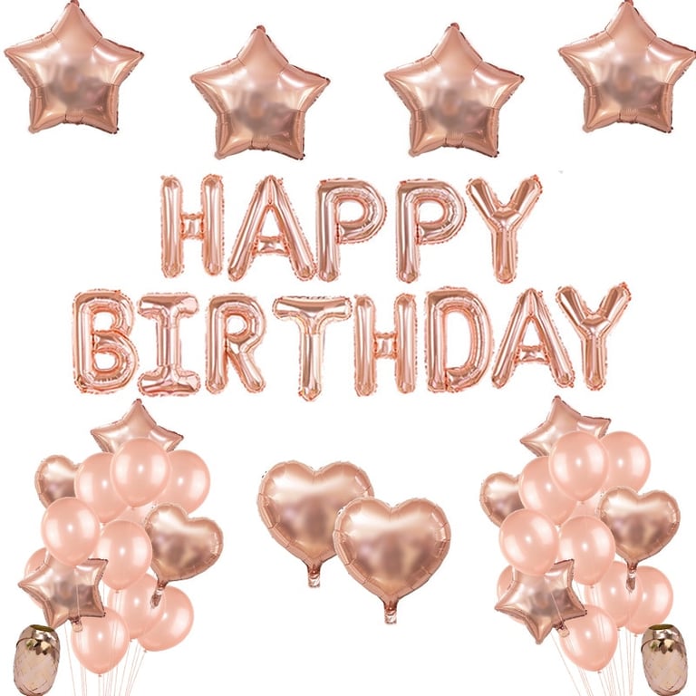 Tags: decoration set, birthday, birthday celebration, balloons, lettering, rose gold