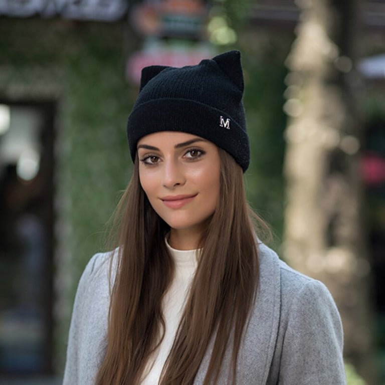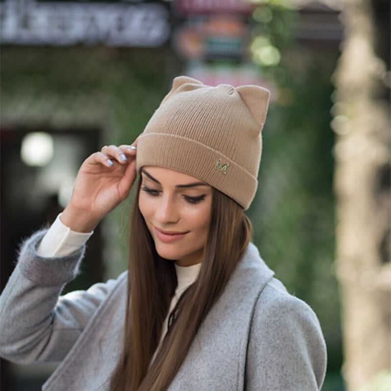 A cute beanie with cat ears.