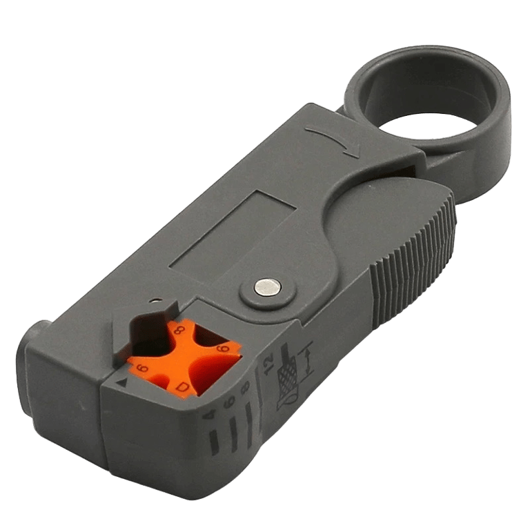 The rotary cable stripper easily fits into your pocket or tool case with dimensions of 9.8 x 3.2 x 1.8 cm. This product allows you to adjust the blade to the correct diameter of the cable, ensuring a perfectly precise cut every time.