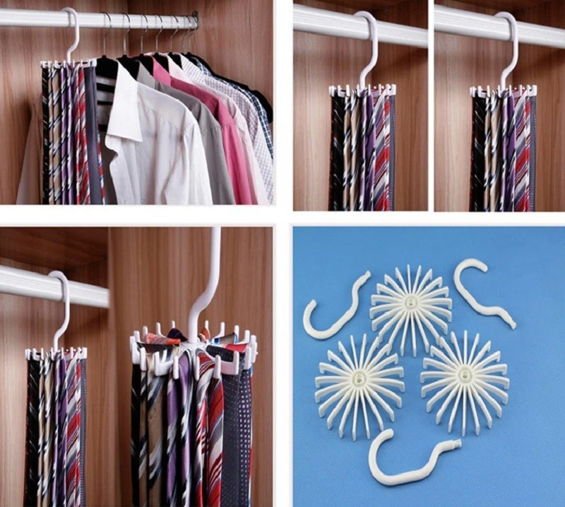 Rotating tie and belt rack