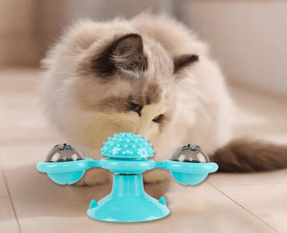 • This cat toy has just about everything. From a flashing ball to rotating arms and catnip.