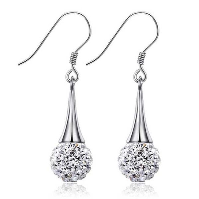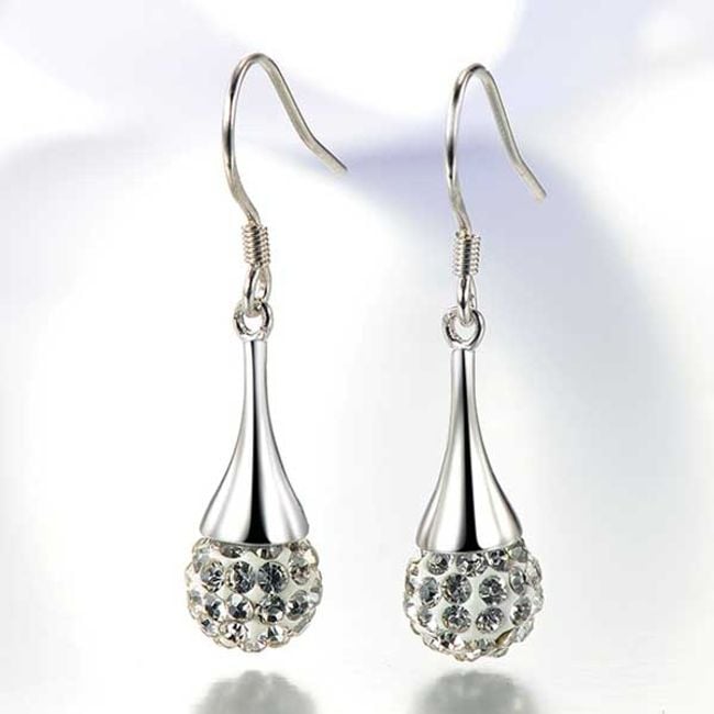 Delicate silver-coloured earrings are the perfect accessory for women who appreciate elegance. The earrings are adorned with a small ball featuring tiny gemstones. An ideal gift for your loved ones.