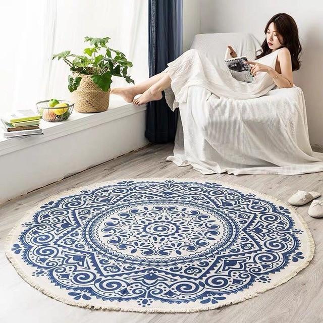 Round rug with a geometric pattern. Available in various colours and sizes.