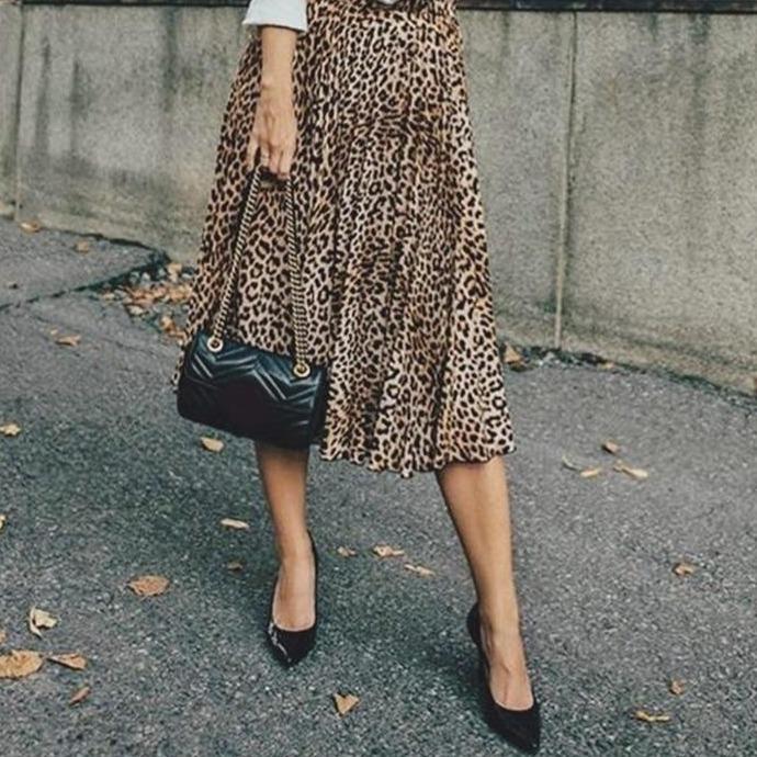 Women's leopard print midi skirt in two colours.