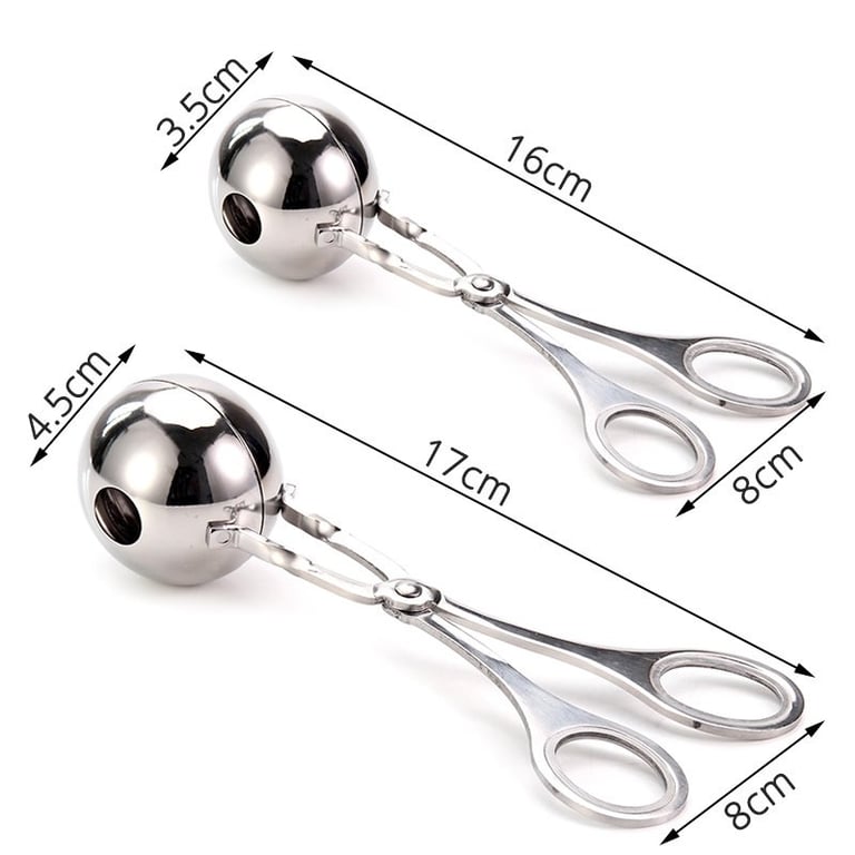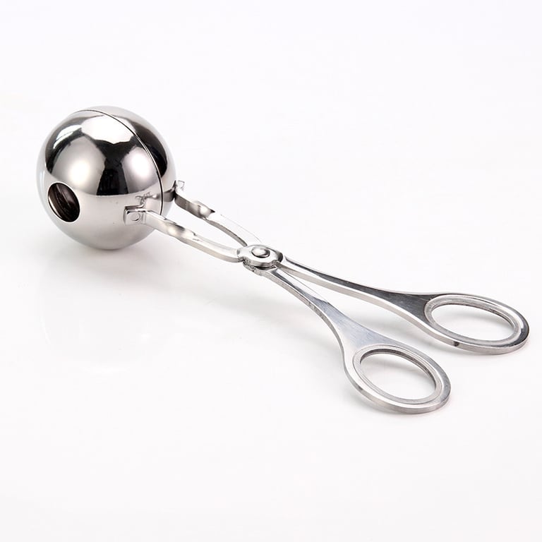 Kitchen tongs for making meatballs or other round snacks. The tongs are available in two sizes.